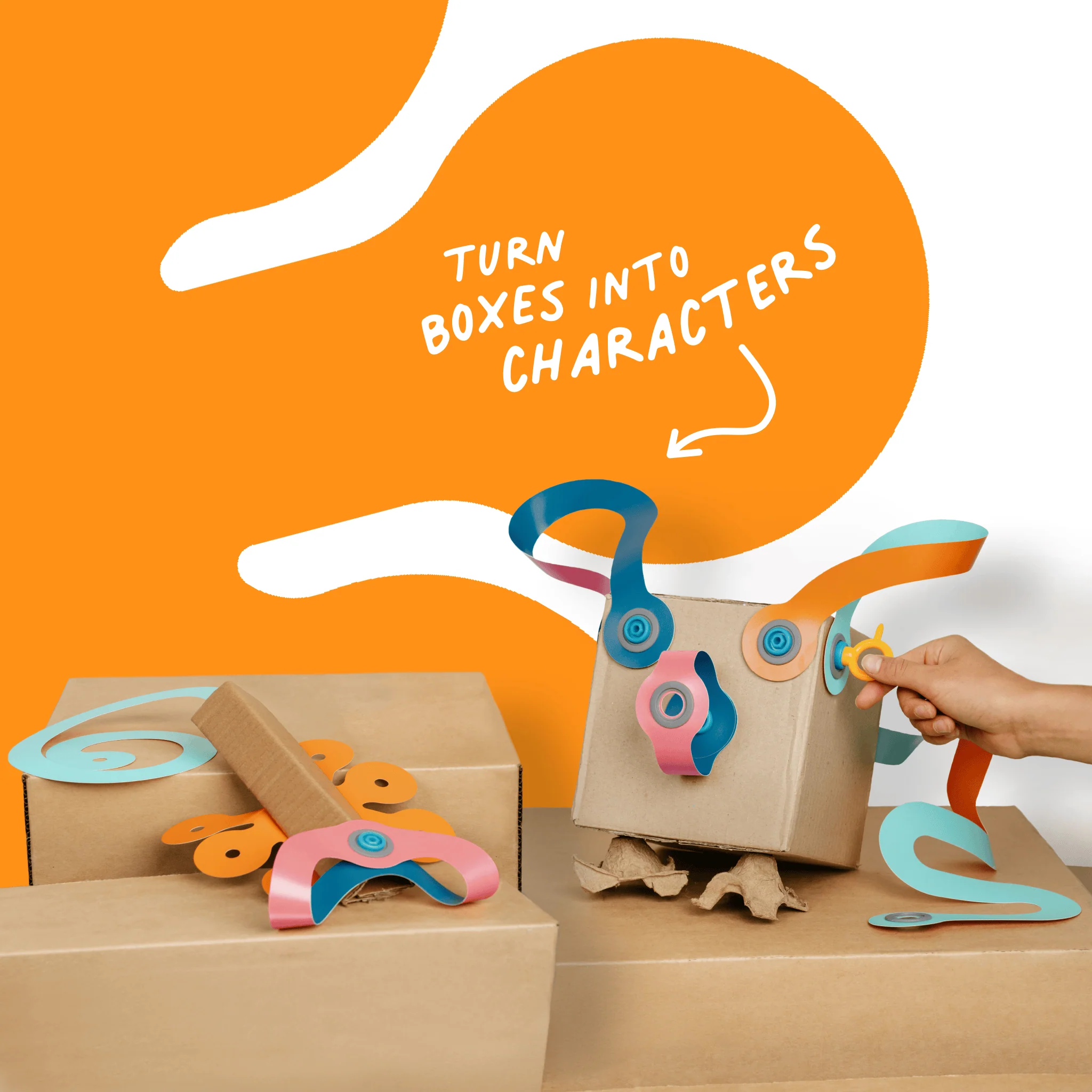 Stack, layer, twist, and connect Deco-Props to add colour and shape to your cardboard creations. The reusable parts bend, flop, transform, and stack together, and allow you to make unique and satisfying decorations that you would not otherwise be able to create in cardboard. Stimulate new ideas and make your Makedo creations more colourful and creative than ever!